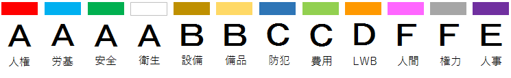 ●いくつかの審査分野を設定する。たとえば「ワークライフバランス」「人権の尊重」「職場の設備」など。(審査については「審査内容」と「審査事項」のページをご覧ください。)